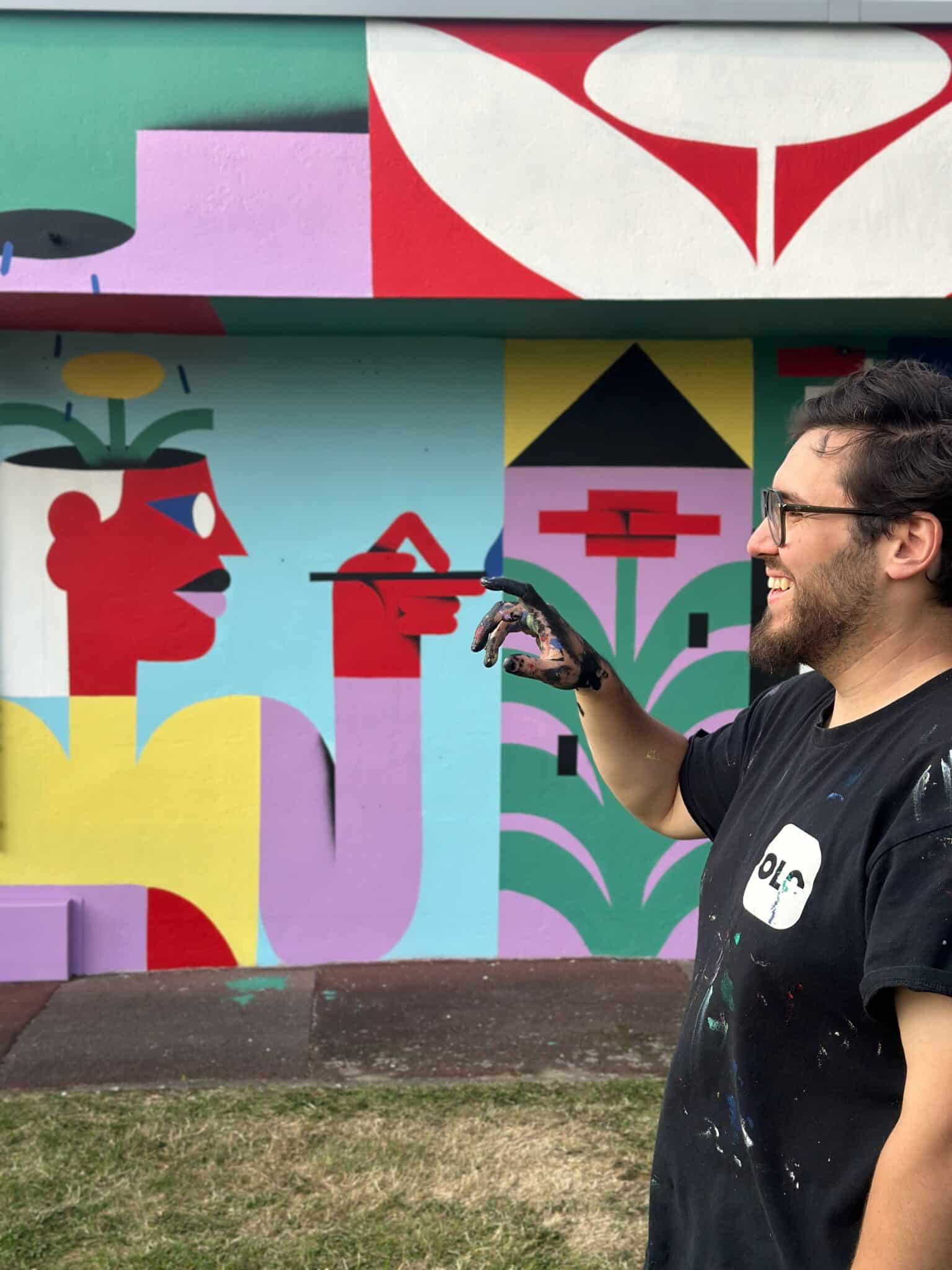 Son travail met en scène des personnages pittoresques, presque dansants, qui semblent vouloir s’échapper du cadre. Cette énergie l’a mené à créer OLO, une application de Réalité Augmentée qui donne vie à ses œuvres via smartphone.