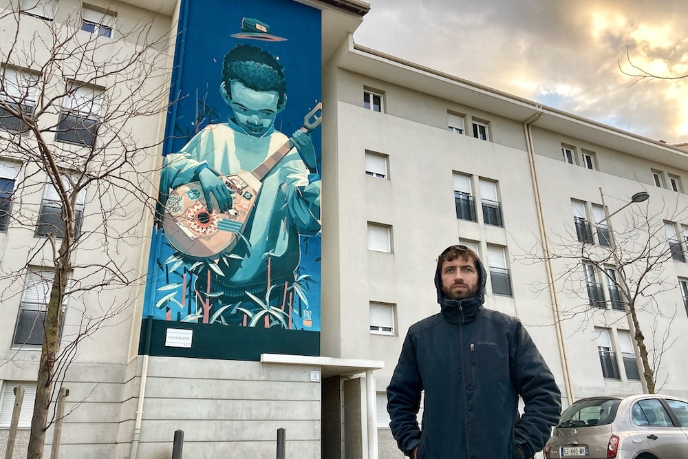 Difuz, de son vrai nom Diego, est un artiste issu du graffiti et du mouvement hip hop, qu’il célèbre depuis une vingtaine d’années dans le paysage urbain. Entre rue et atelier, il développe un univers figuratif peuplé de personnages et de scènes du quotidien où réel et imaginaire se mélangent de façon poétique. Installé à Marseille, ce Parisien d’origine nourrit son travail de voyages, de rencontres et de moments de vie, en réalisant à la fois de grandes fresques murales et des œuvres d’atelier.