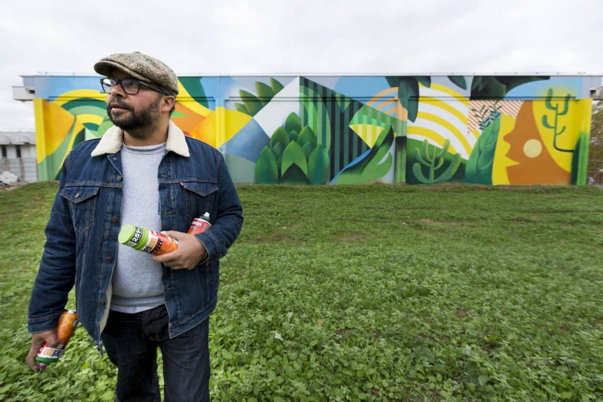 En collaboration avec PALM, il a habillé les rideaux de fer de la Maison Dahlia à Montreuil, un espace de co-living du groupe Colonies. Cette fresque florale rend hommage au naturaliste Buffon, dont la rue porte le nom. En animant la façade même en dehors des heures d’ouverture, l’intervention transforme les volets métalliques en un support artistique vivant qui embellit le cadre de vie et renforce l’identité du quartier.
