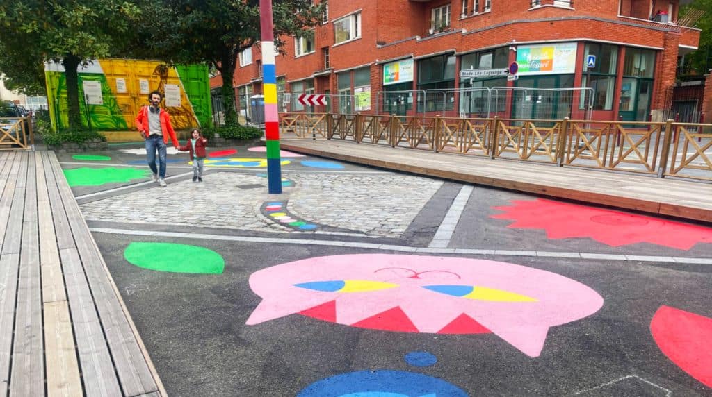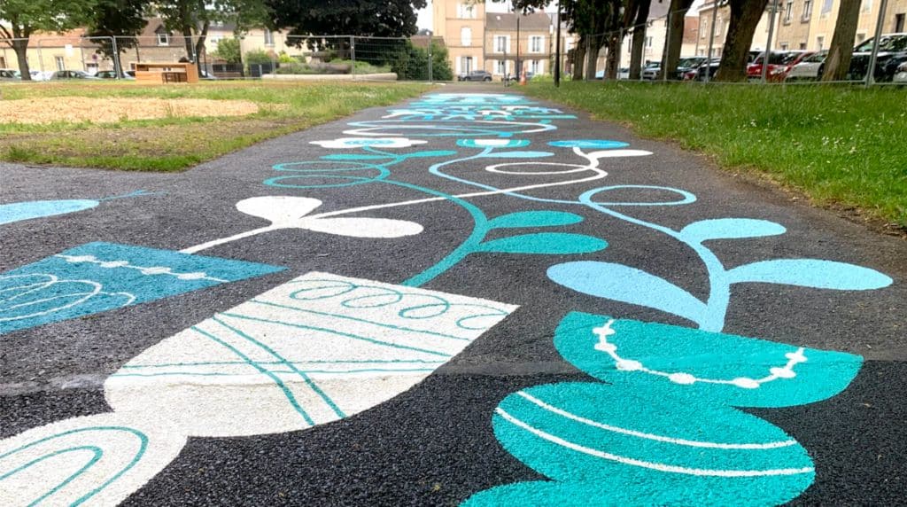 Quand la plantation d’arbres n’est pas possible, la mise en peinture des sols et des surfaces devient un levier rapide et efficace pour transformer l’ambiance et participer au rafraîchissement.