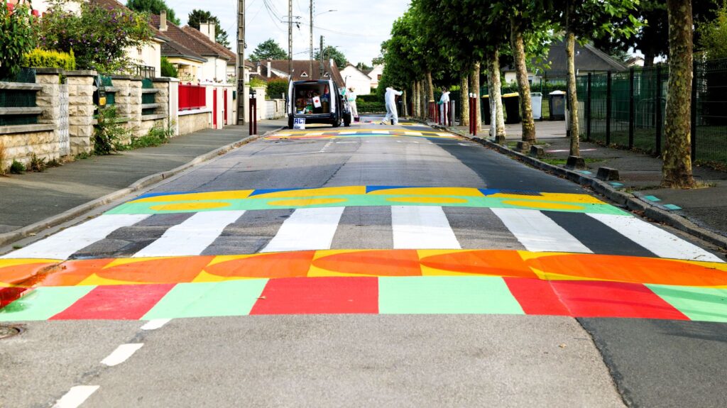 À Blois, par exemple, des visuels peints sur la chaussée ont été pensés pour capter l’attention des automobilistes et les inciter à ralentir. Une manière concrète et créative d’agir sur les comportements.