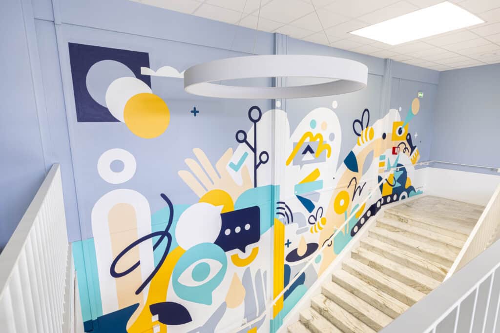 Pendant plusieurs semaines, ils ont rêvé, dessiné, préparé et mirent la main à la pâte ! Encadrés par l’artiste Manon Charpak, ils ont mis de la couleur sur les murs comme on met de l’énergie dans une équipe : avec enthousiasme, coopération et fierté.