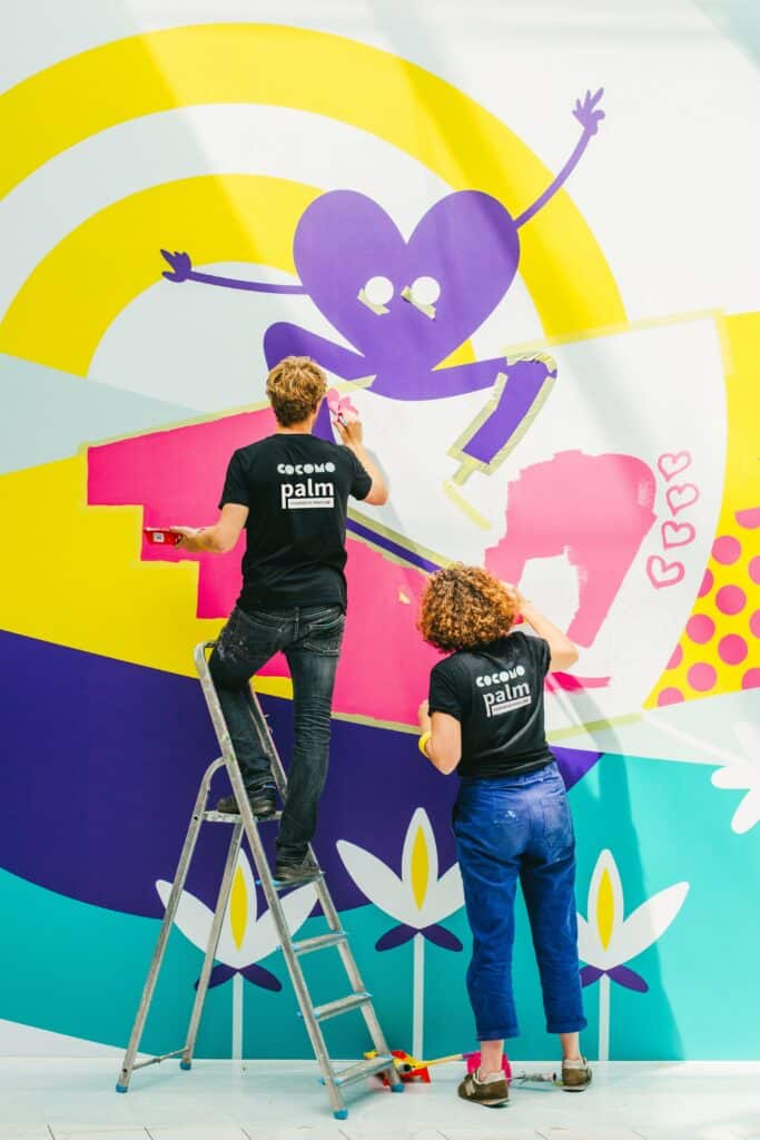 Pour cela, ils ont fait appel à PALM pour réaliser une fresque participative avec les jeunes du Centre Social Balzac. Ces jeunes ont ainsi pu rencontrer l’artiste et mettre la main à la pâte.
