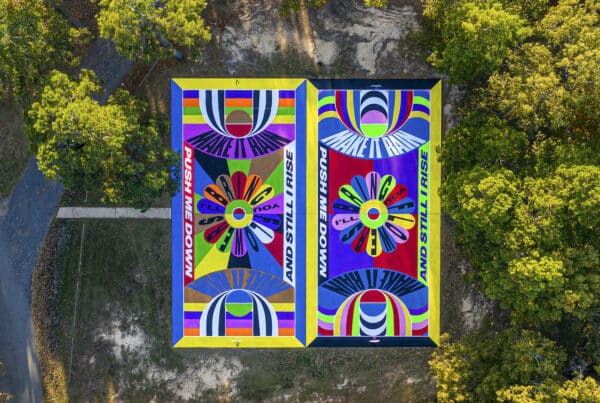 - Le Studio Proba a réinventé la piscine du Marrow Mid Century aux États-Unis. Fidèle a leur style, c’est un travail de peinture mêlant des formes abstraites et de superposition qui donnent à ce lieu ce look tendance.