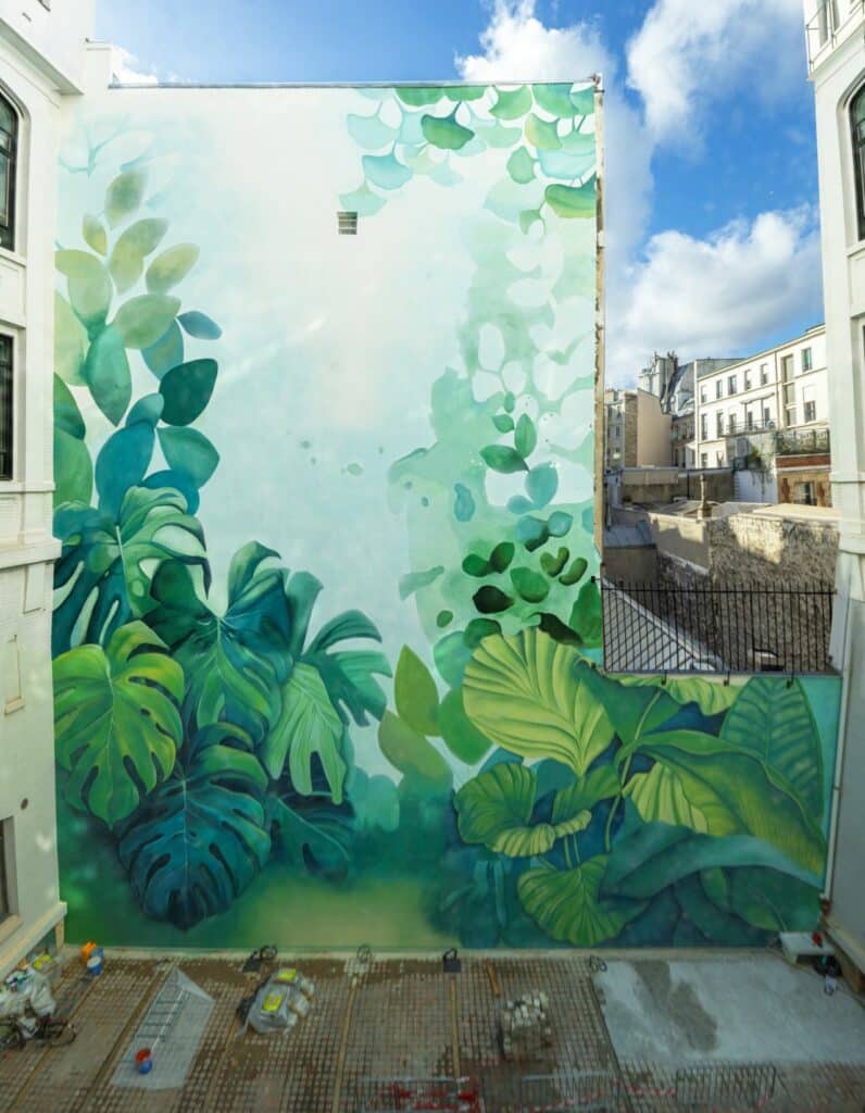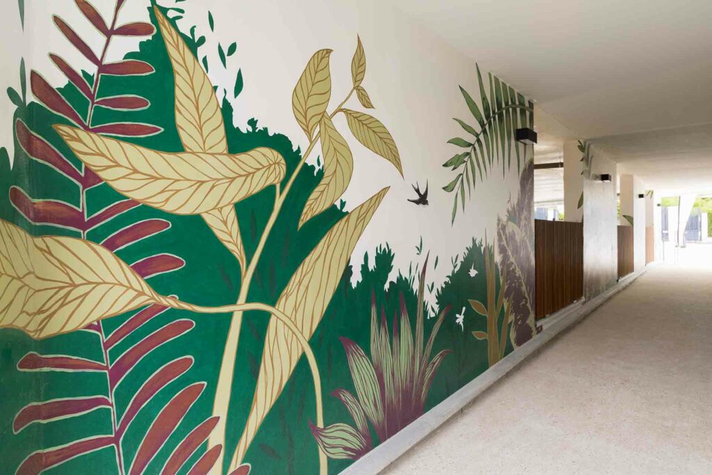 Elle a été réalisée avec des peintures dépolluantes, participant à l’amélioration de la qualité de l’air tout en offrant une signature esthétique forte.