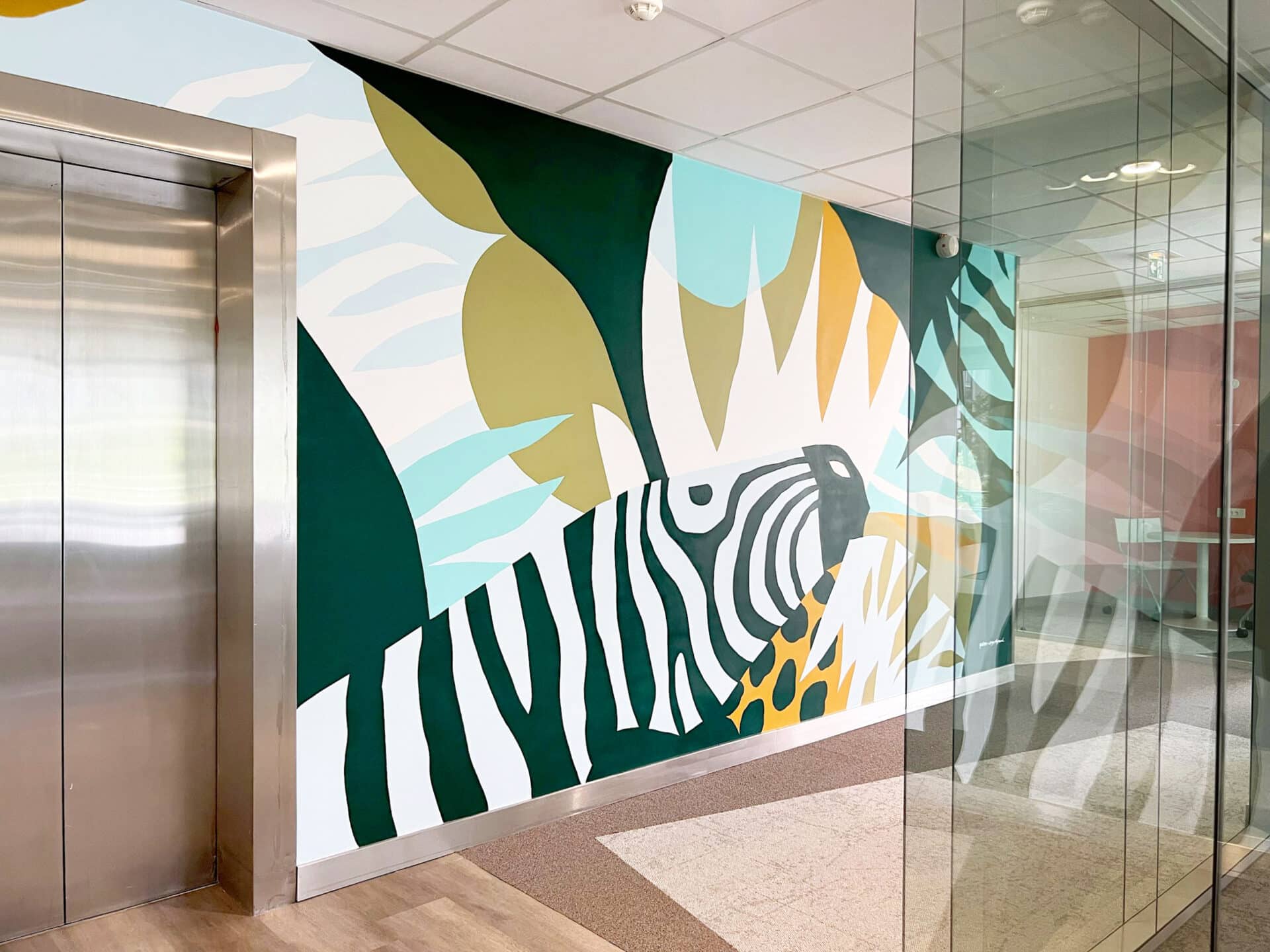 Depuis deux ans, AG2R La Mondiale fait entrer l’art dans ses bureaux. Ainsi, nous avons réalisé un projet de fresques participatives, en faisant voter les collaborateurs parmi 25 profils d’artistes hétéroclites. Ce sont les artistes Daniel Mac Lloyd, Kat Action, Lady M, Grégoire Nayrand, Clara Langelez et Steve Pitocco qui ont remporté les suffrages.