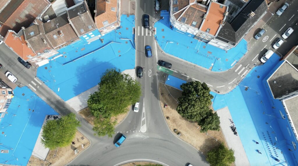 Pour accompagner ce nouvel usage, PALM a conçu et réalisé un parcours artistique au sol sur 4 800 m², à travers une série de fresques peintes directement sur le bitume.