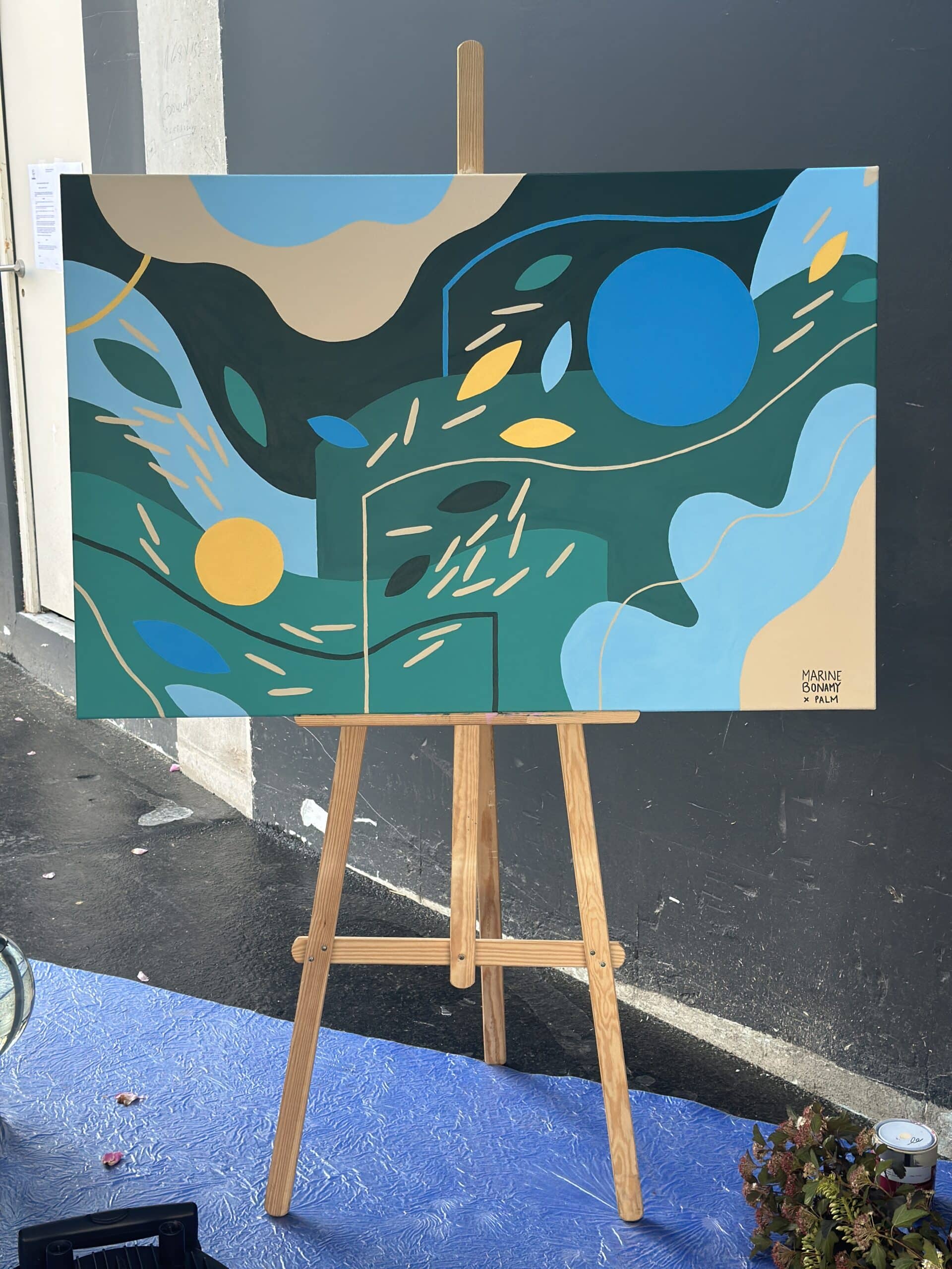 L’artiste Polar a été retenu. Connu pour ses paysages contemporains stylisés. Il s’inspire à la fois de formes organiques et géométriques, jouant sur des aplats colorés et lumineux.