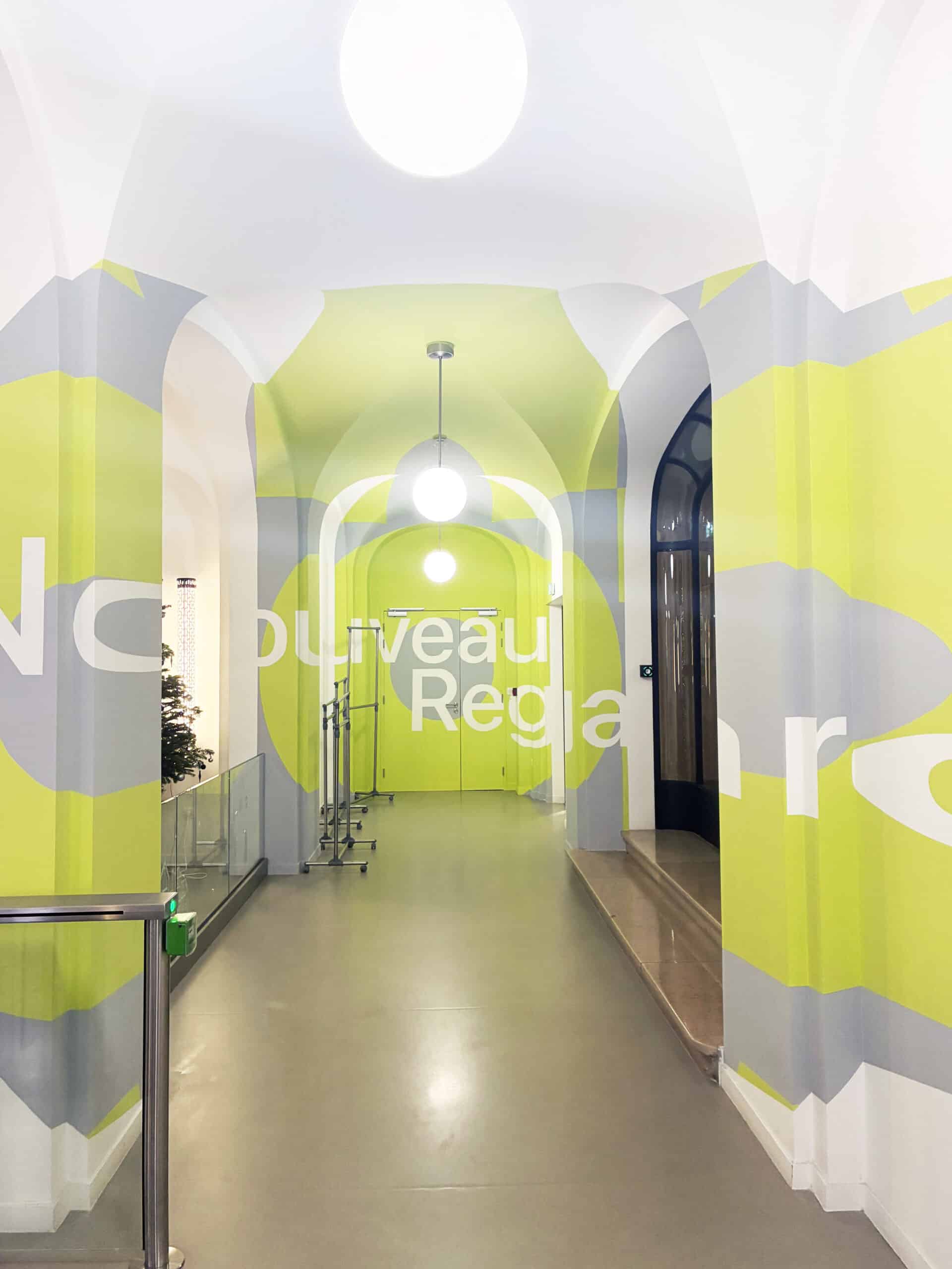 Pour ce projet, PALM collabore avec le studio Vaadigm pour créer une anamorphose qui donne une vraie personnalité aux bureaux. Imaginée pour les vœux 2026, l’œuvre joue avec l’architecture du lieu pour transformer une simple circulation en une expérience visuelle.