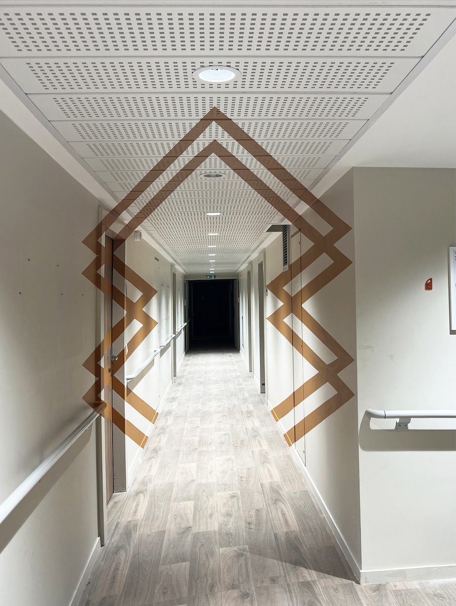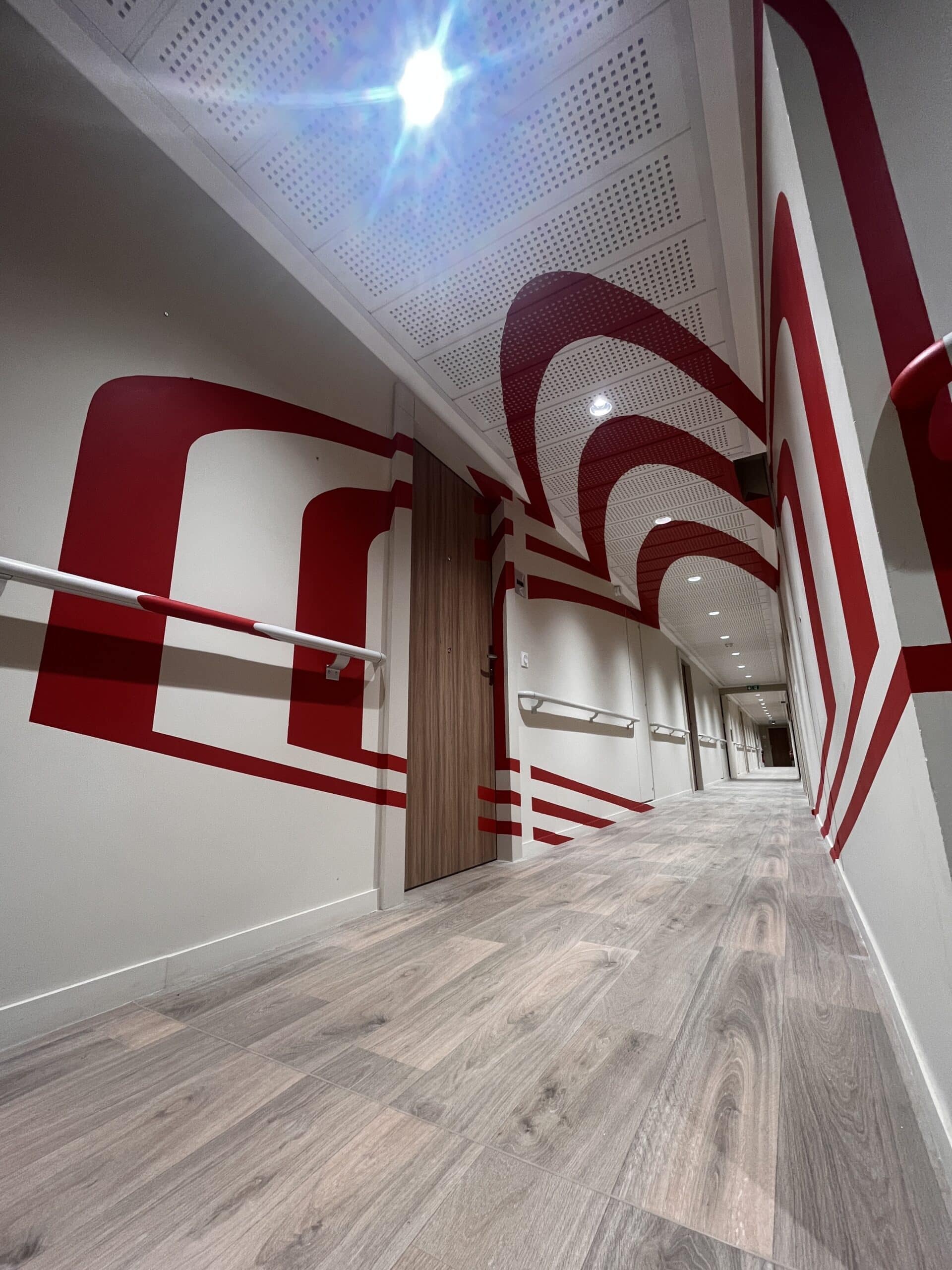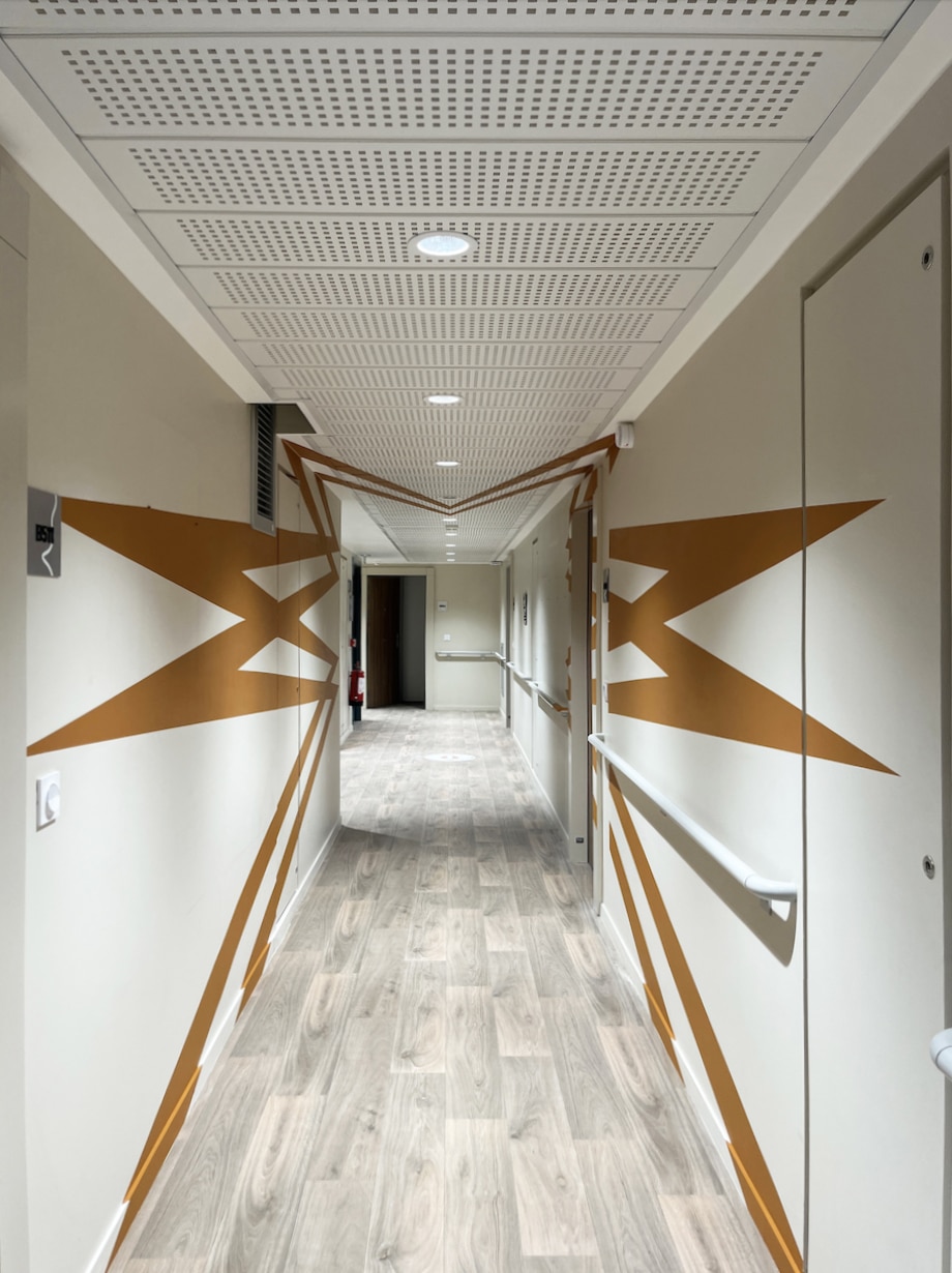 Quand Colonies nous a sollicités pour apporter de la couleur aux 6 couloirs d’une ancienne résidence médicalisée à Asnières-sur-Seine, nous avons vu une opportunité : aller au-delà de l’habillage et proposer une expérience visuelle immersive à travers l’anamorphose.
