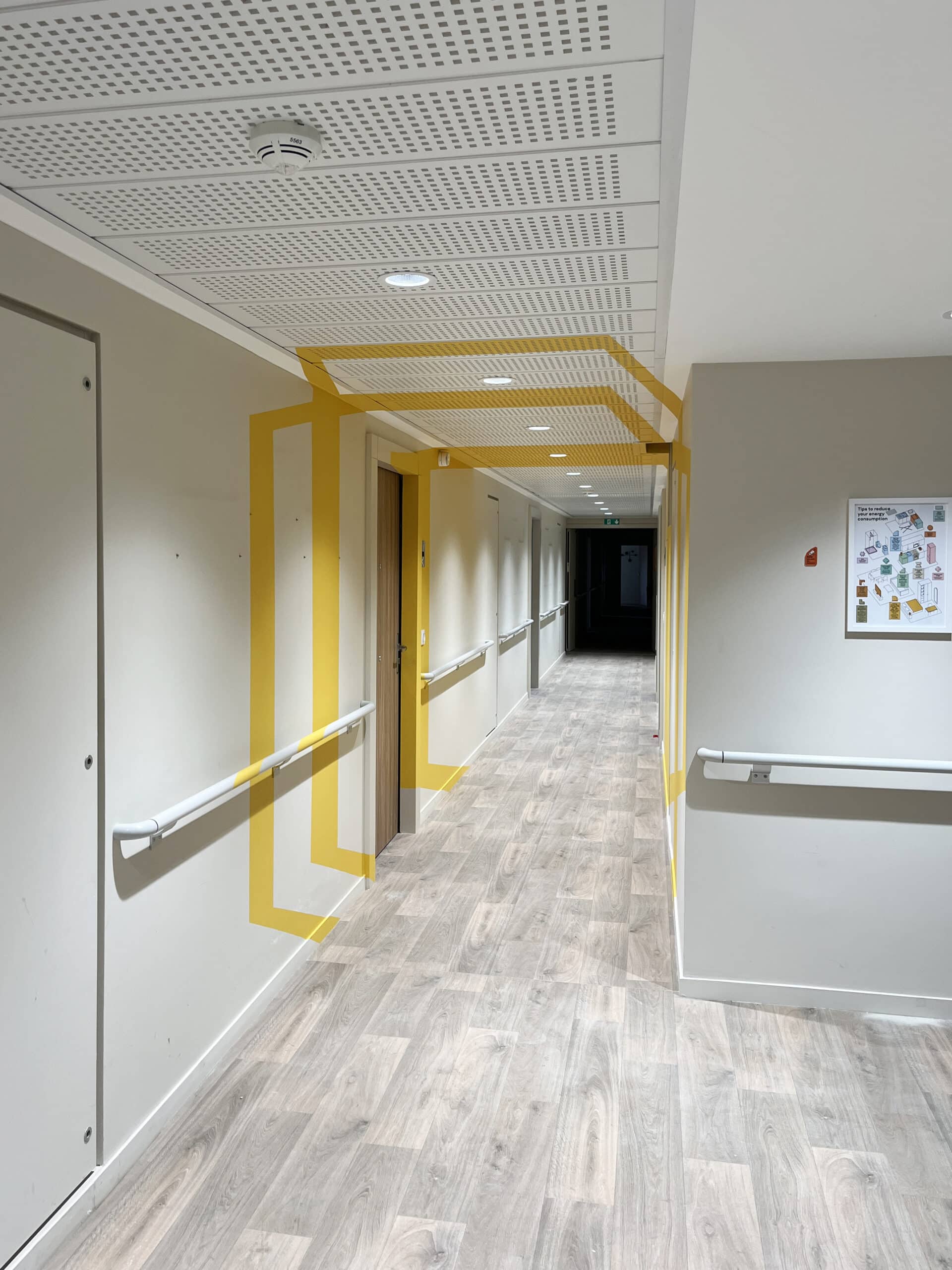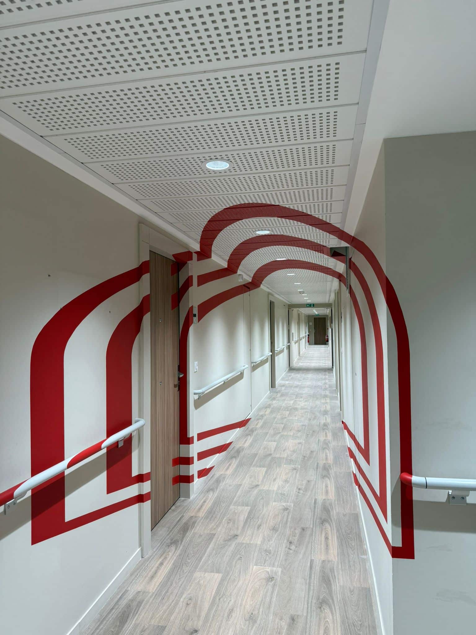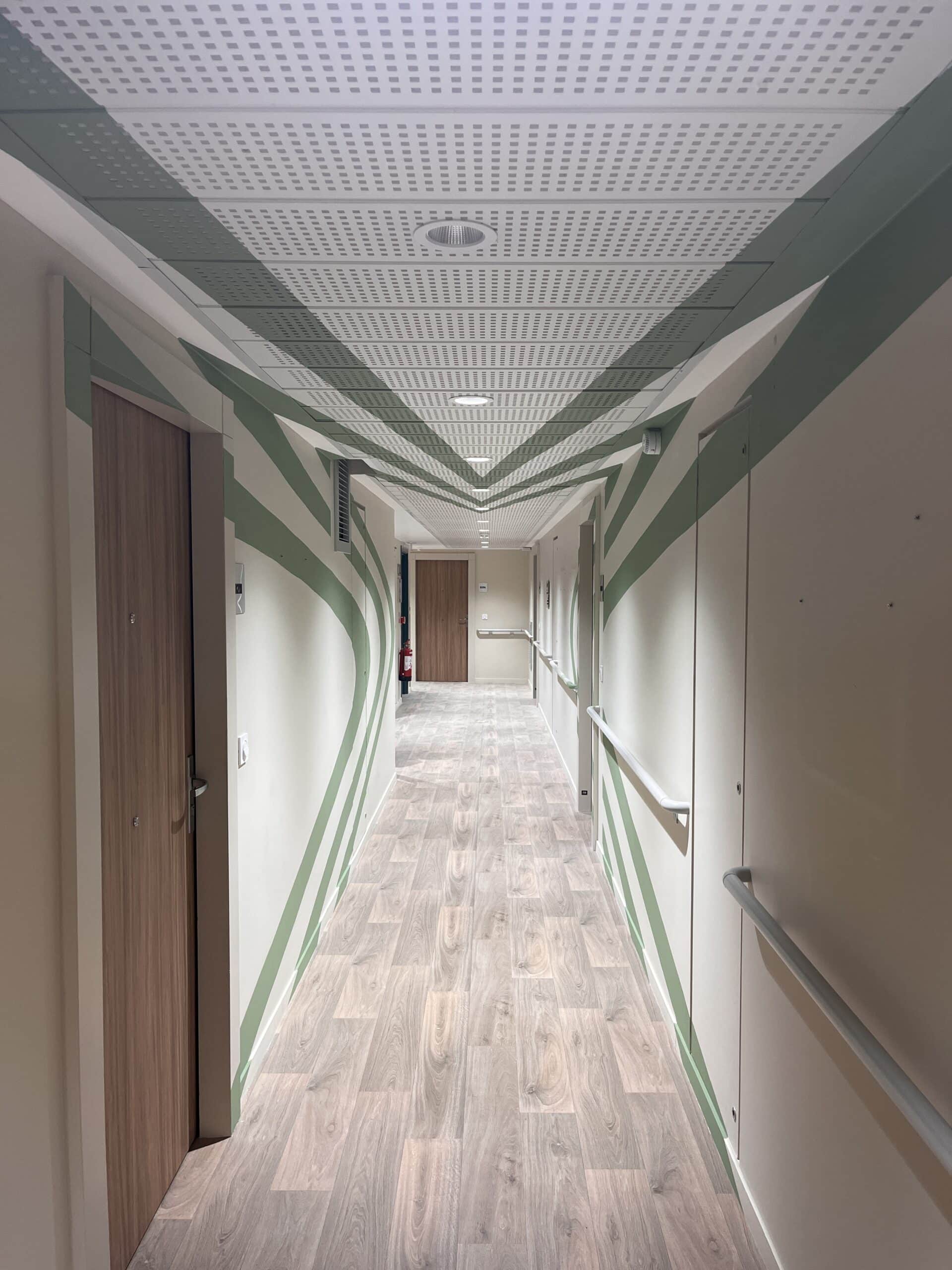 Quand Colonies nous a sollicités pour apporter de la couleur aux 6 couloirs d’une ancienne résidence médicalisée à Asnières-sur-Seine, nous avons vu une opportunité : aller au-delà de l’habillage et proposer une expérience visuelle immersive à travers l’anamorphose.