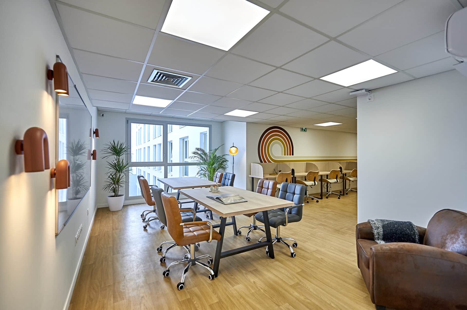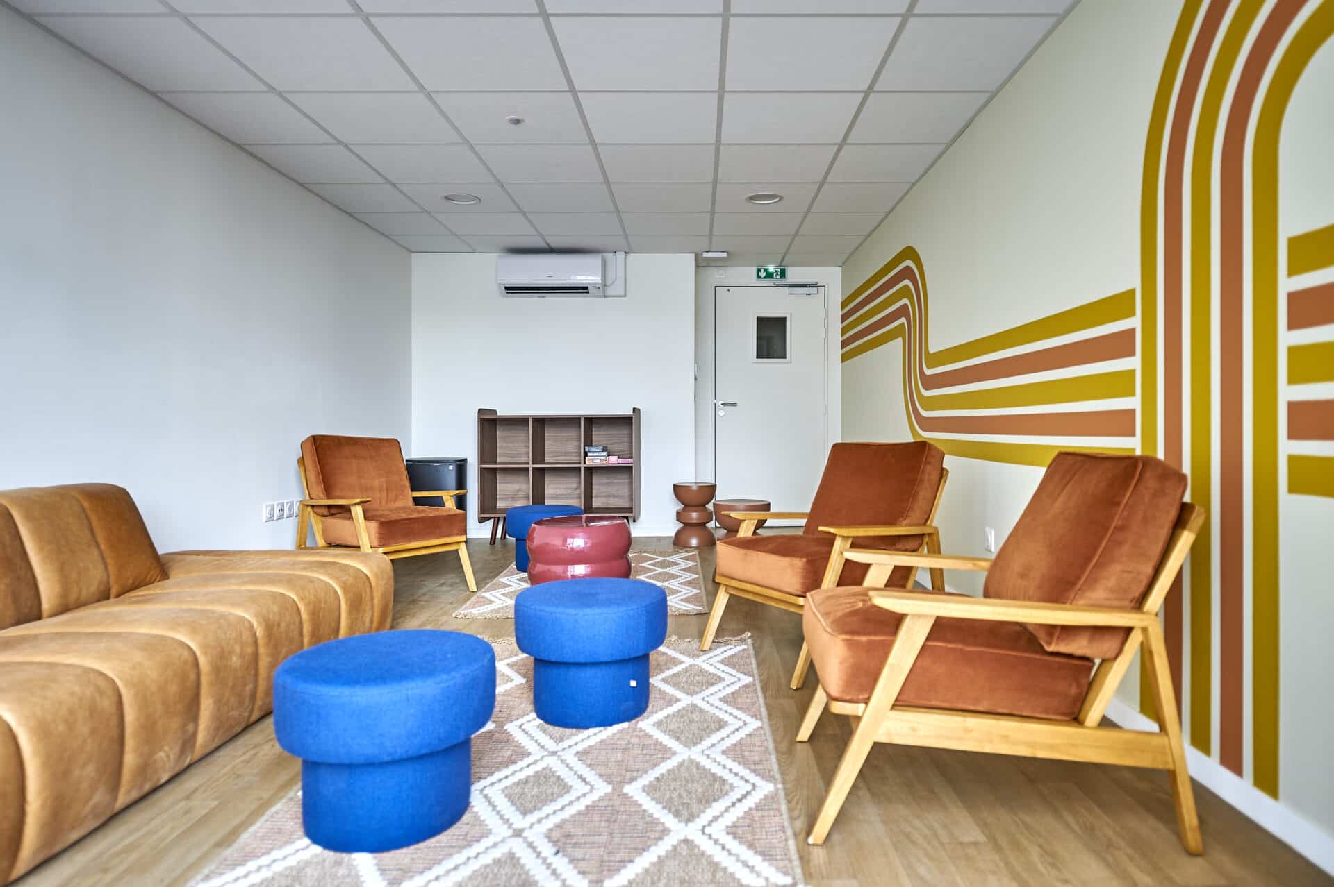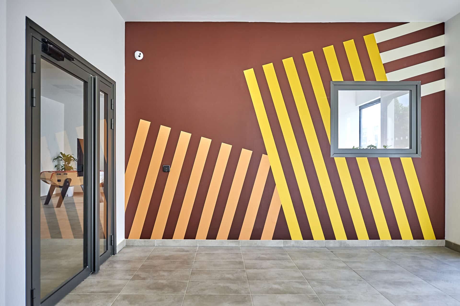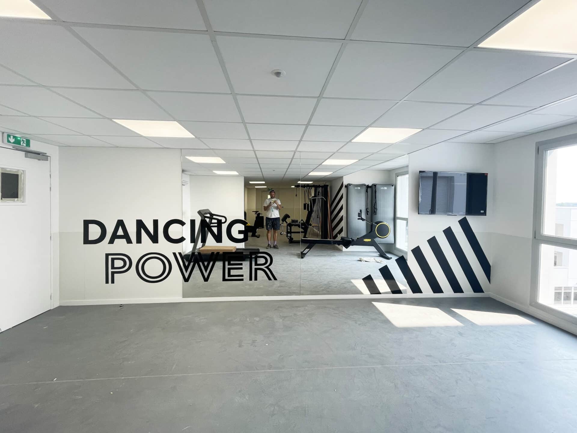 Derrière l’apparente simplicité, un chantier d’envergure mené en un temps record : signalétique peinte à la main dans les longs couloirs, sur des centaines de portes et dans des dizaines d’espaces clés. Six étages transformés en trois semaines, pour un résultat premium, durable et authentique.