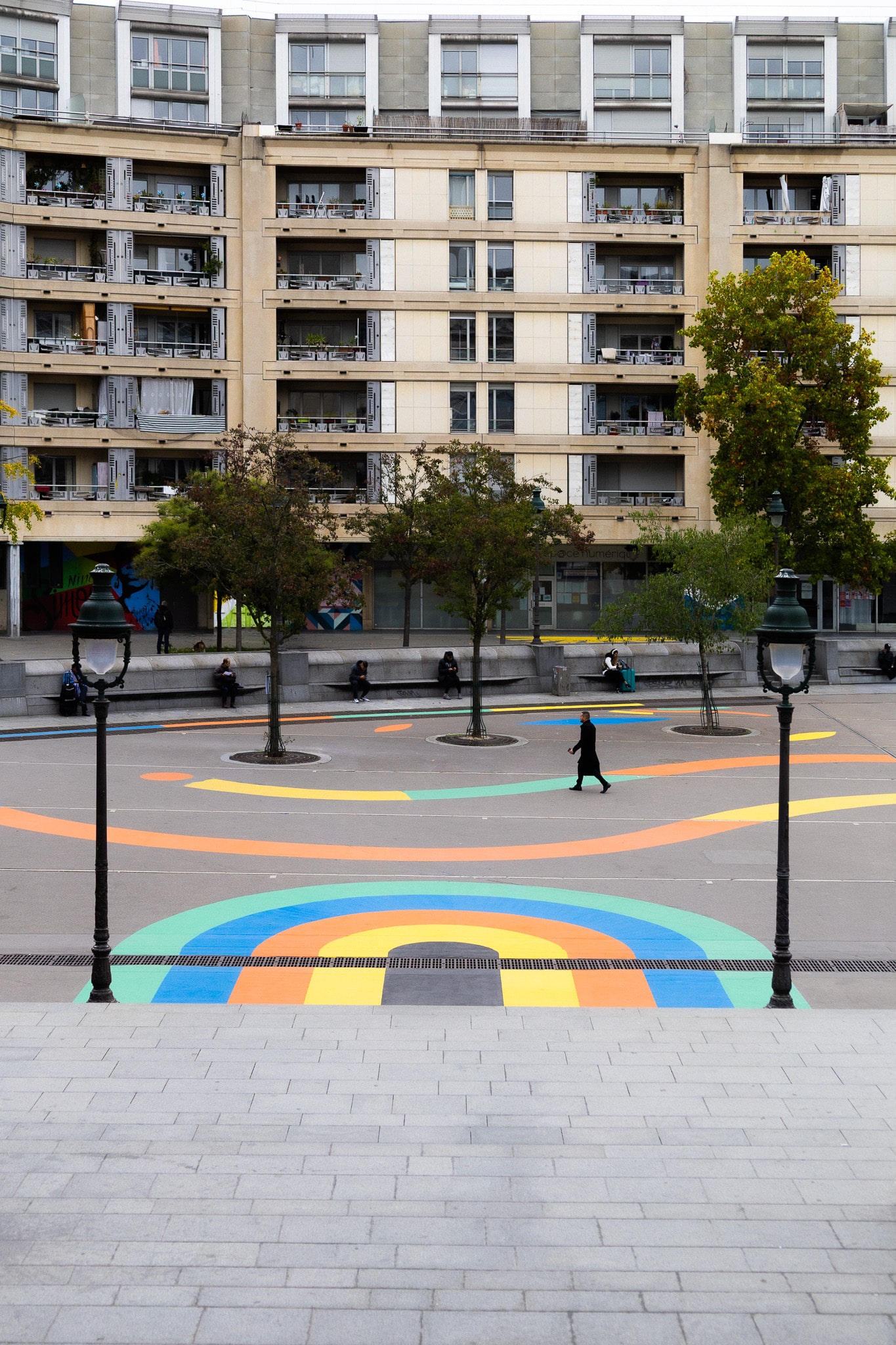Cette écriture graphique relève pleinement du design actif : elle invite à se déplacer autrement, à lever les yeux (et les pieds), et à jouer avec l’espace public plutôt que de simplement le traverser.