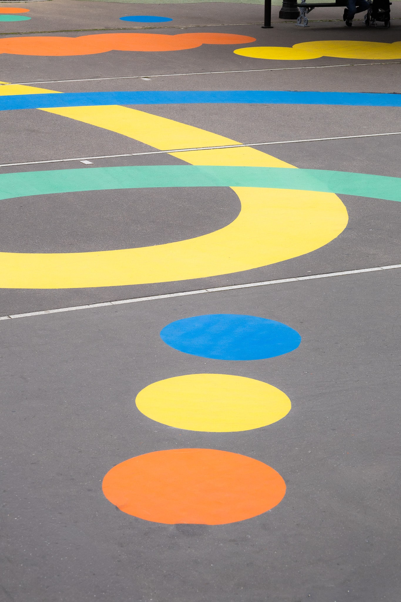 Les lignes et couleurs imaginées par Alix d’Anselme dessinent désormais un véritable langage au sol :