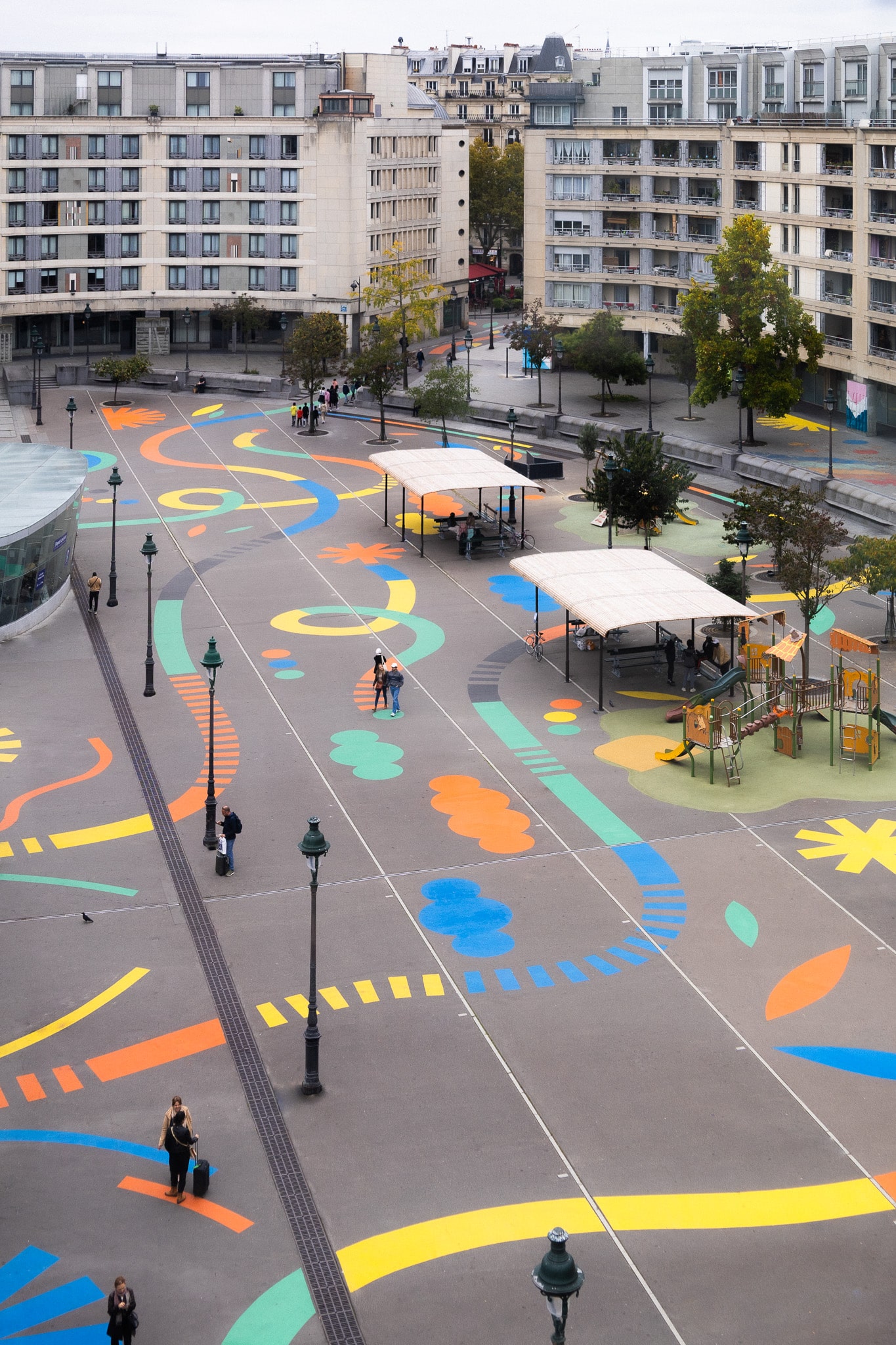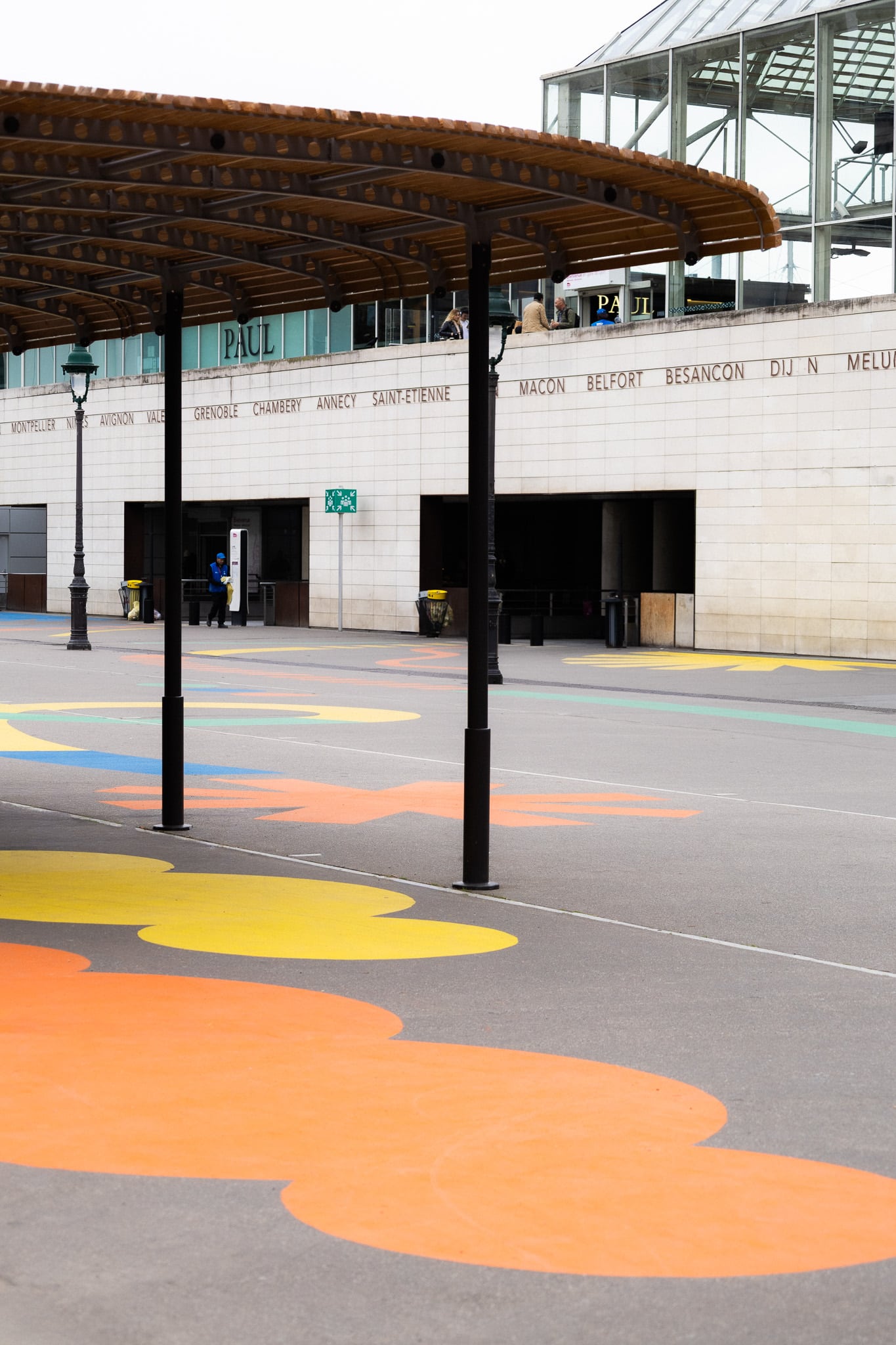 Dans ce contexte, PALM a été invitée à poser une nouvelle couche de narration au sol : une fresque qui n’est pas qu’un décor, mais un outil de repérage, de confort et de jeu.