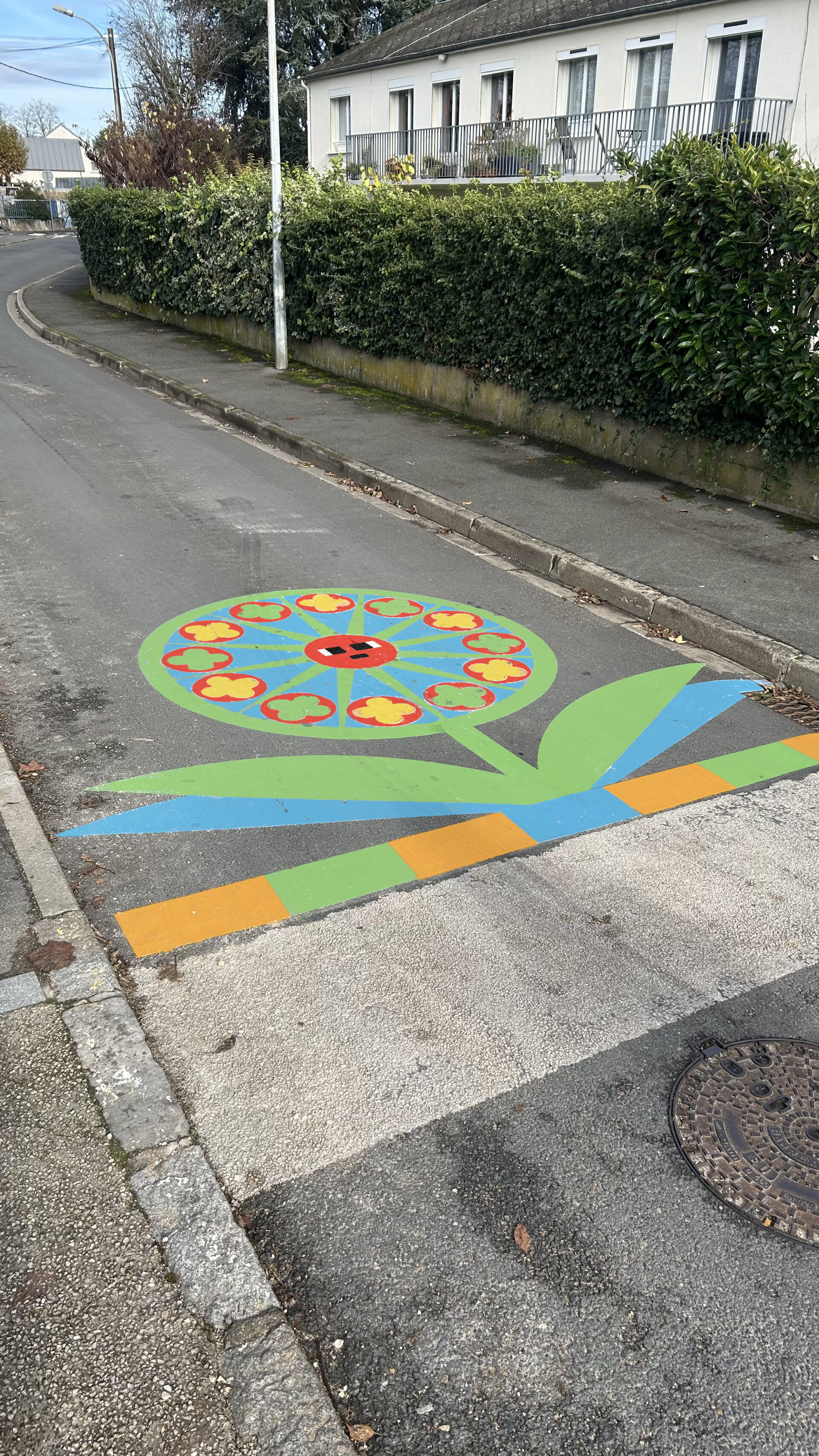 Une fresque sur la route autour de l’école Charles Péguy à Orléans