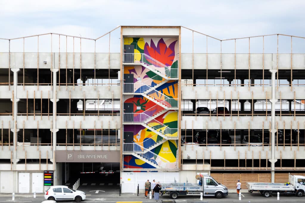 En tout, plus de 1 000 m² de façades urbaines ont été transformés en supports de création contemporaine, en parfaite cohérence avec la charte graphique de la marque. Chaque fresque reprend les codes du nouveau logo Renault, en jouant avec les formes géométriques, les contrastes noir et blanc et le volume.