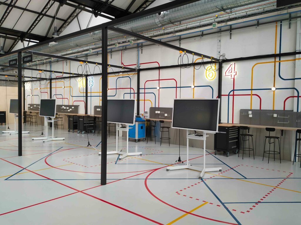 Les teintes vives et les motifs dynamiques choisis pour cette réalisation insufflent une énergie positive et transforment durablement l’atmosphère du lieu. Le résultat est un cadre de travail unique, à la fois chaleureux et identitaire, qui renforce la fierté et la cohésion interne.
