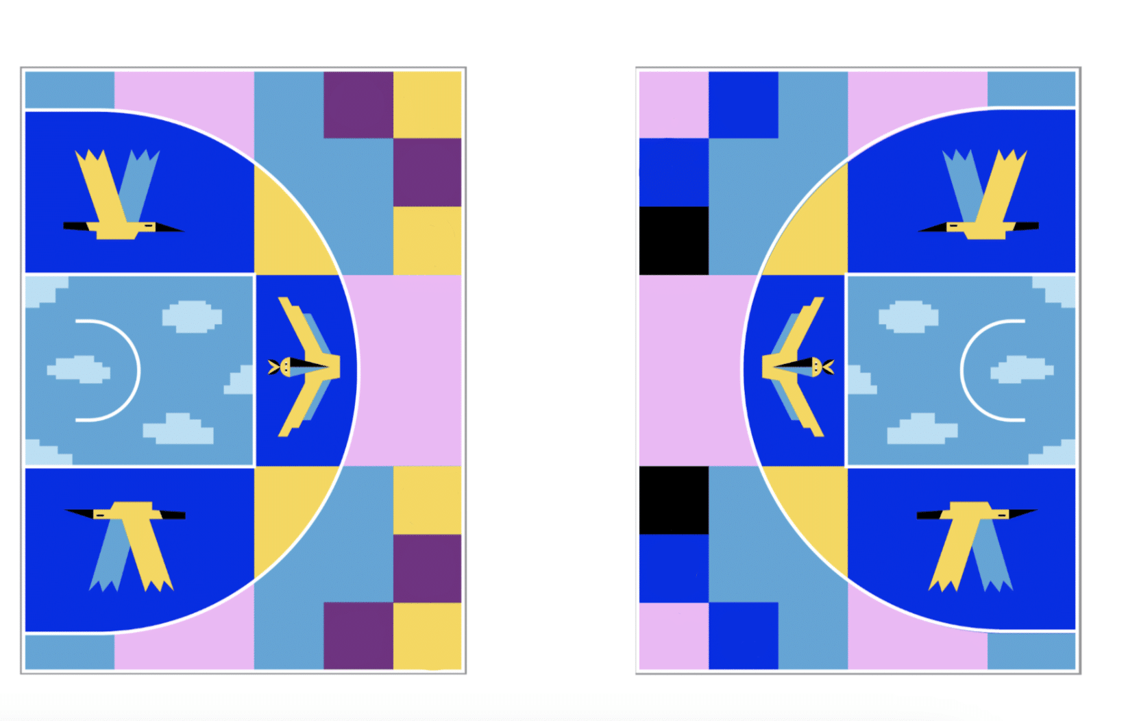 Pour ce projet, Guillaumit a souhaité transformer les terrains de basket en un espace vibrant, coloré et inclusif. Inspiré par Maryse Hilsz, aviatrice et résistante, il a exploré les thèmes du ciel, du vol, des hélices et de l’élévation.