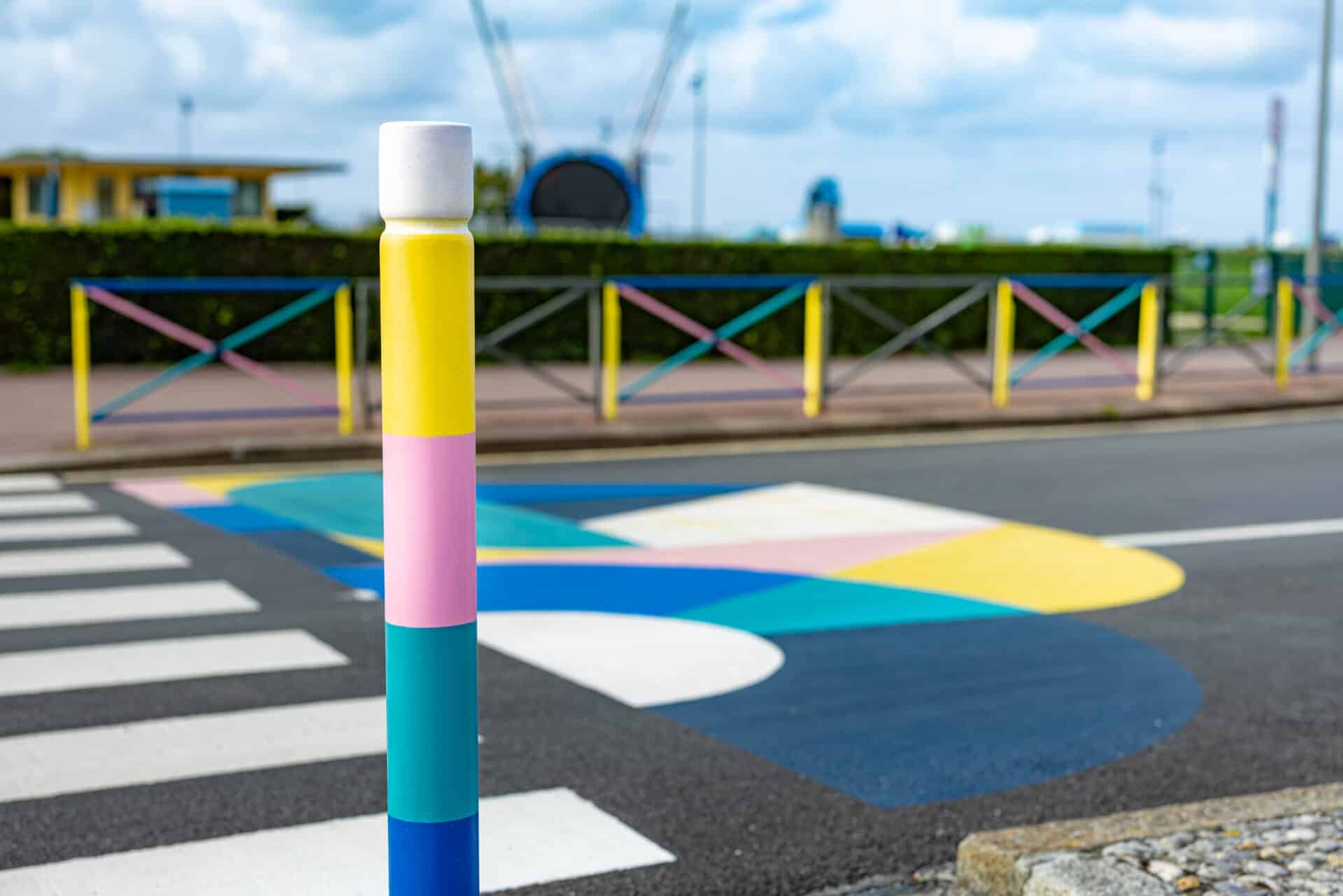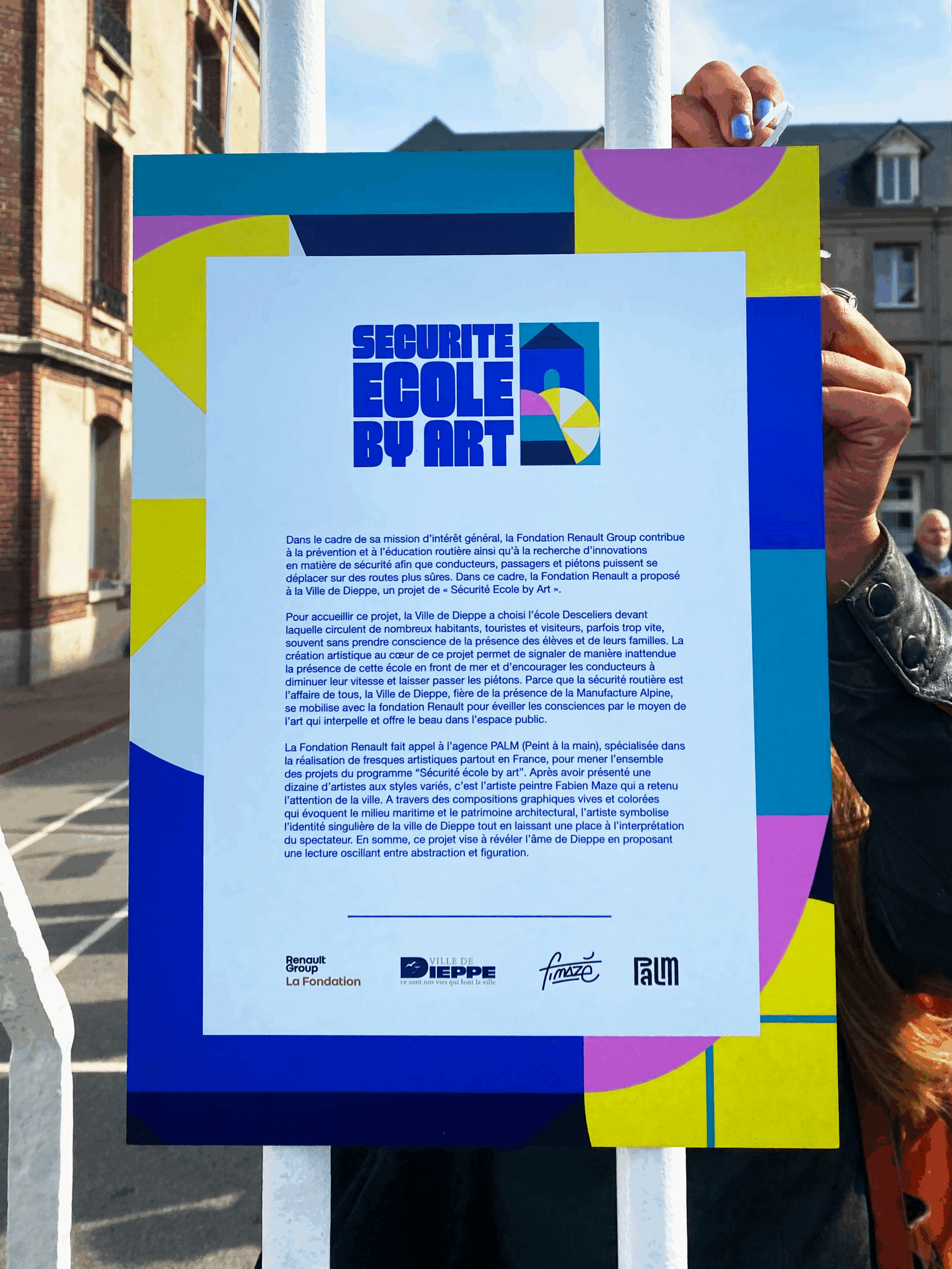 Ce projet s’inscrit dans le programme Sécurité École by Art, initié et financé par la Fondation Renault avec l’impulsion de Jean Descours. Déployé dans plusieurs villes, il vise à sécuriser les trajets des enfants, réduire les risques aux abords des écoles et transformer l’espace public par l’art.