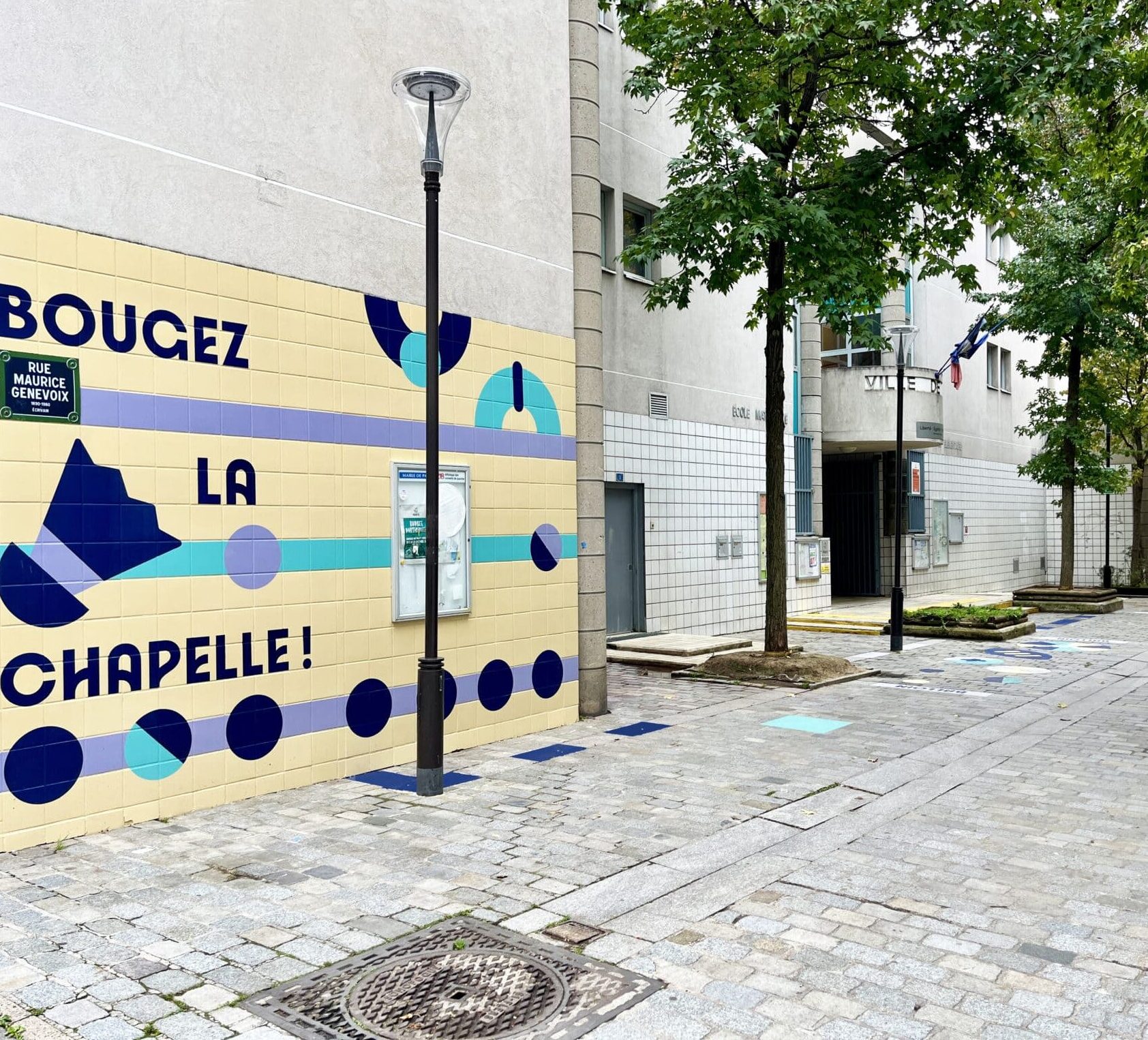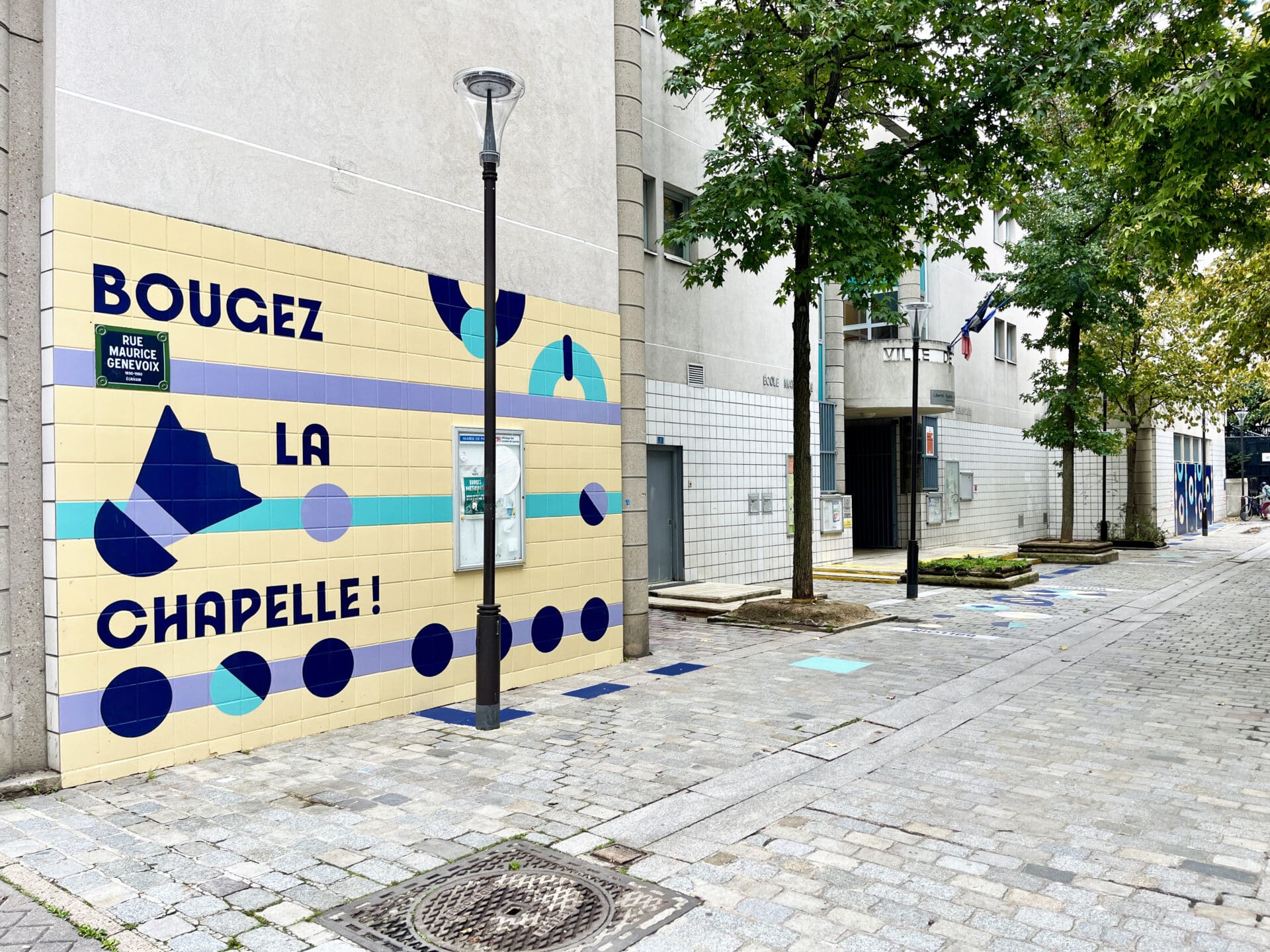 Avec le studio graphique Jaune Sardine, PALM a remporté l’appel à projets de la rue Maurice Genevoix, dans le 18ᵉ arrondissement de Paris, porté par la Ville de Paris dans le cadre du dispositif Bougez la Chapelle (JO 2024). L’ambition : transformer cette rue, au pied de l’école, en un espace plus vivant, ludique et actif au quotidien.
