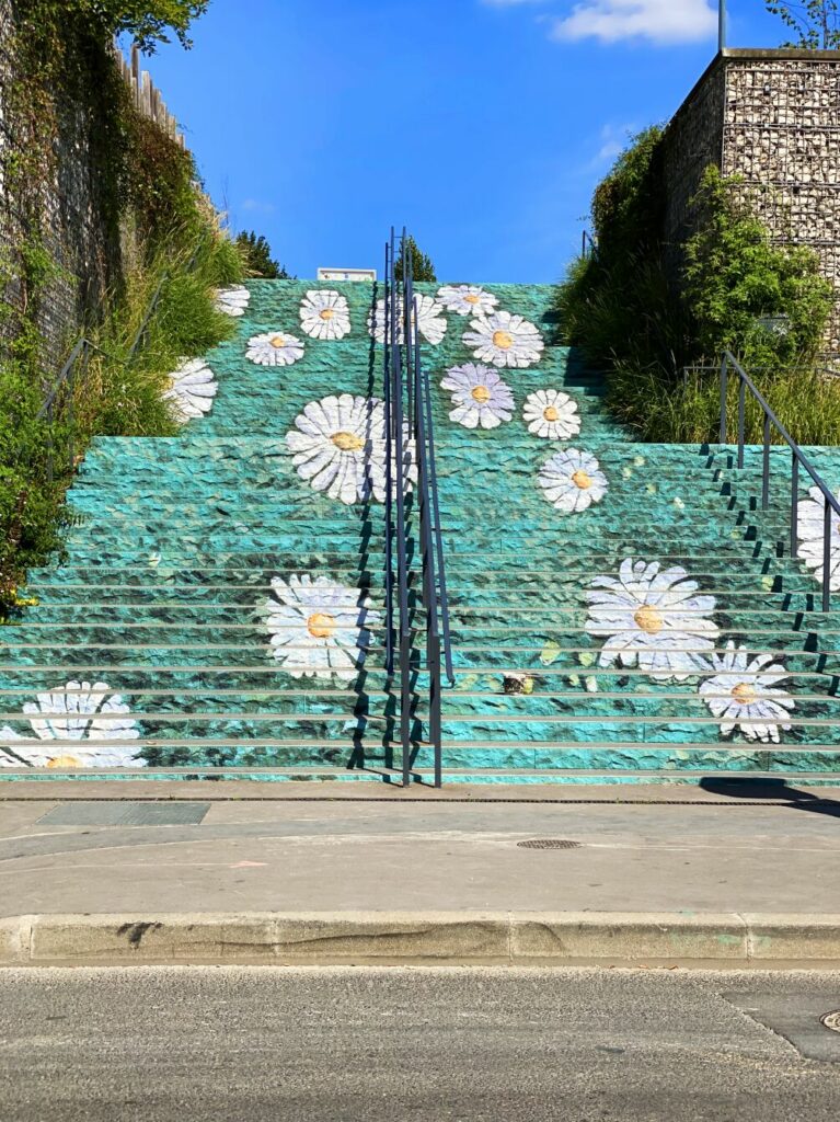 Cette fresque murale fait partie d’un parcours qui relie la gare de Clichy – Levallois à l’immeuble BLACK Paris Clichy, futurs bureaux bas-carbone.